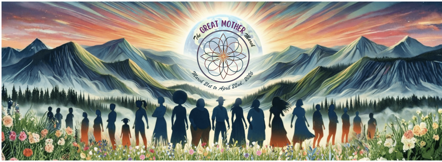 Great Mother March 2026 Saturday, March 21, 2026 10:00 AM 10:00 Wednesday, April 22, 2026 11:00 AM 11:00 GreatMotherMarch.com USA (map) Google Calendar ICS Welcome to the Great Mother March! This ground breaking event is grounded in love and the Earth - The Great Mother.To learn more go to GreatMotherMarch.com